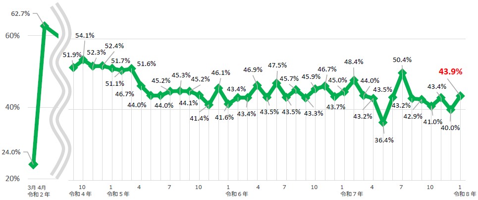 ↓画像をクリックするとテレワーク実施率調査結果(令和8年1月)(PDF形式:446KB)が開きます